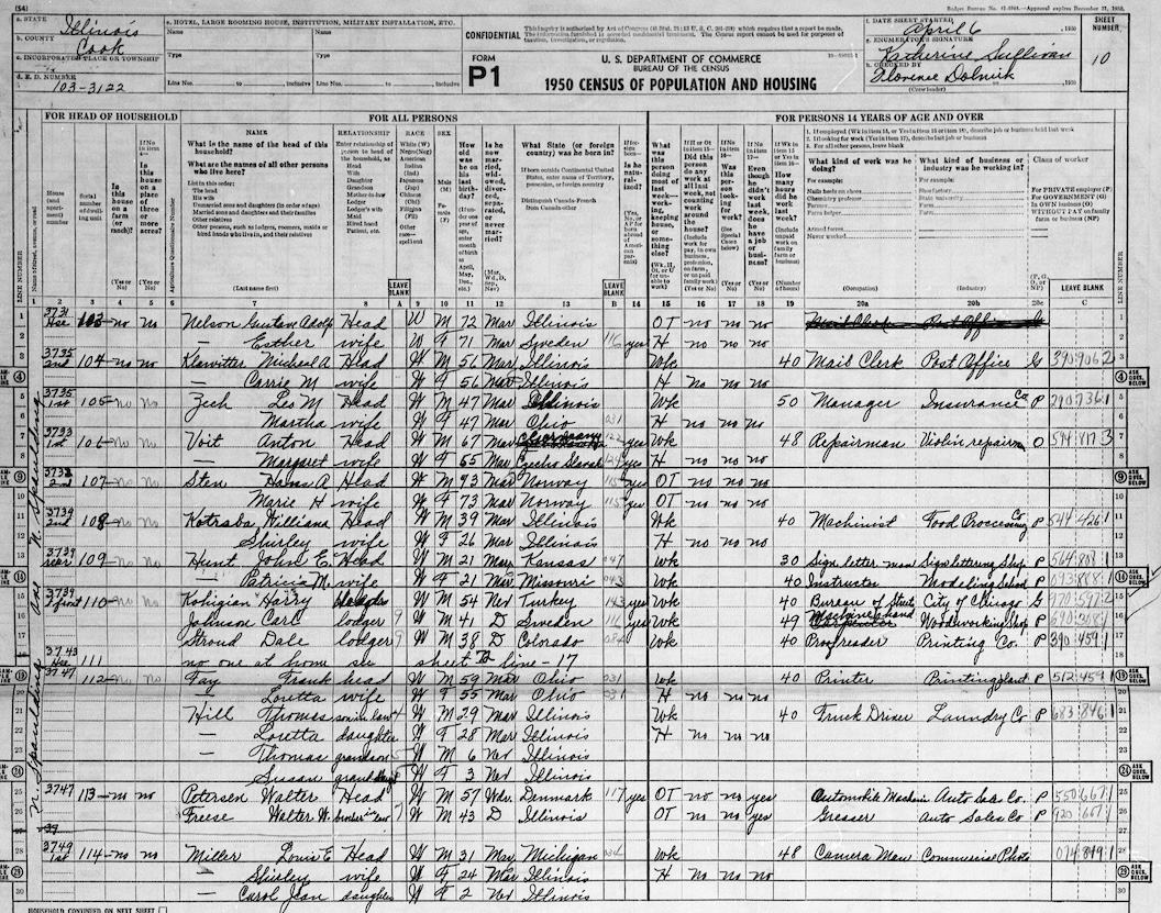 1950 Home address: 3747 N. Spaulding, Chicago.