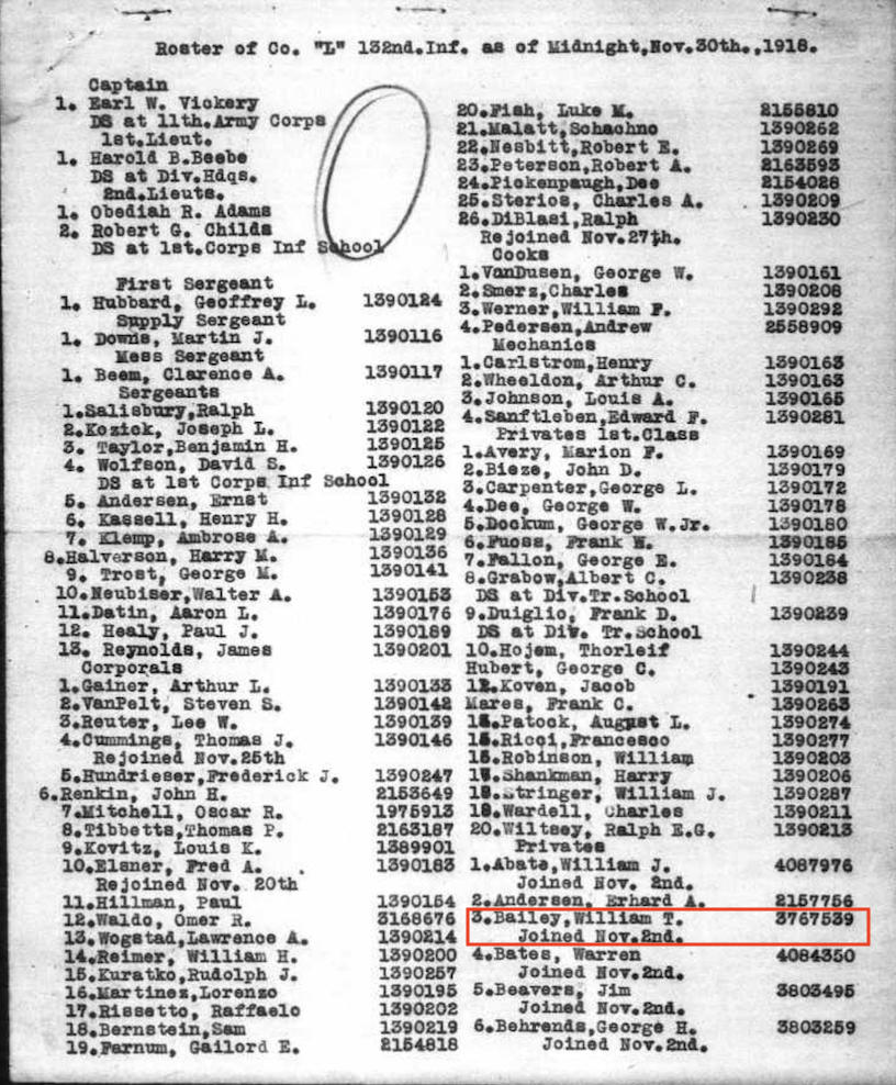 Company Roster: BAILEY William T-1918