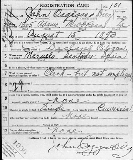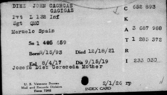 - Muster Roll Nov-Dec 1917 Camp Logan, Houston Tx: Listed as Private. Absent with Leave 25 Nov to 4 Dec 1917.