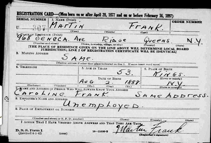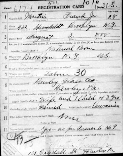Enlisted December 7, 1917 per Manifest remark enroute France: