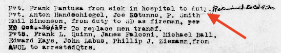Date unknown, Morning Report: Returned to duty.