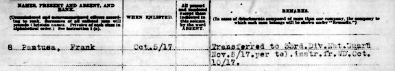Assigned to 33rd Division on November 5,1917 per Muster Roll: